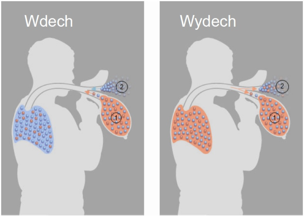 Oddychanie możemy podzielić na dwie podstawowe fazy: wdech (czynna) i wydech (bierna).