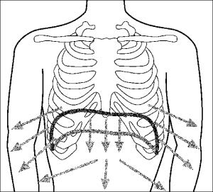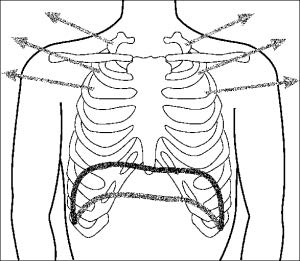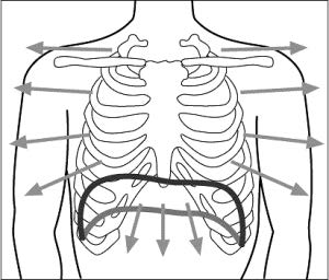 - Tor piersiowy – podczas wdechu poszerzają się głównie górne obszary klatki piersiowej, następuje uniesienie ramion i łopatek, w dalszej fazie następuje podciągnięcie brzucha. Ten typ oddychania nie jest do końoca prawidłowy.
