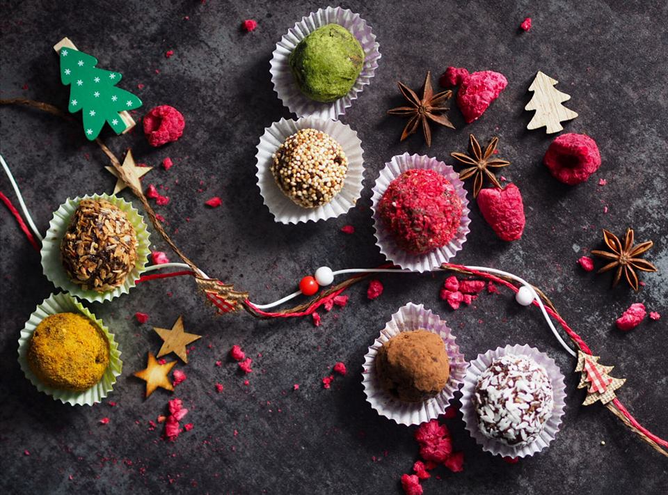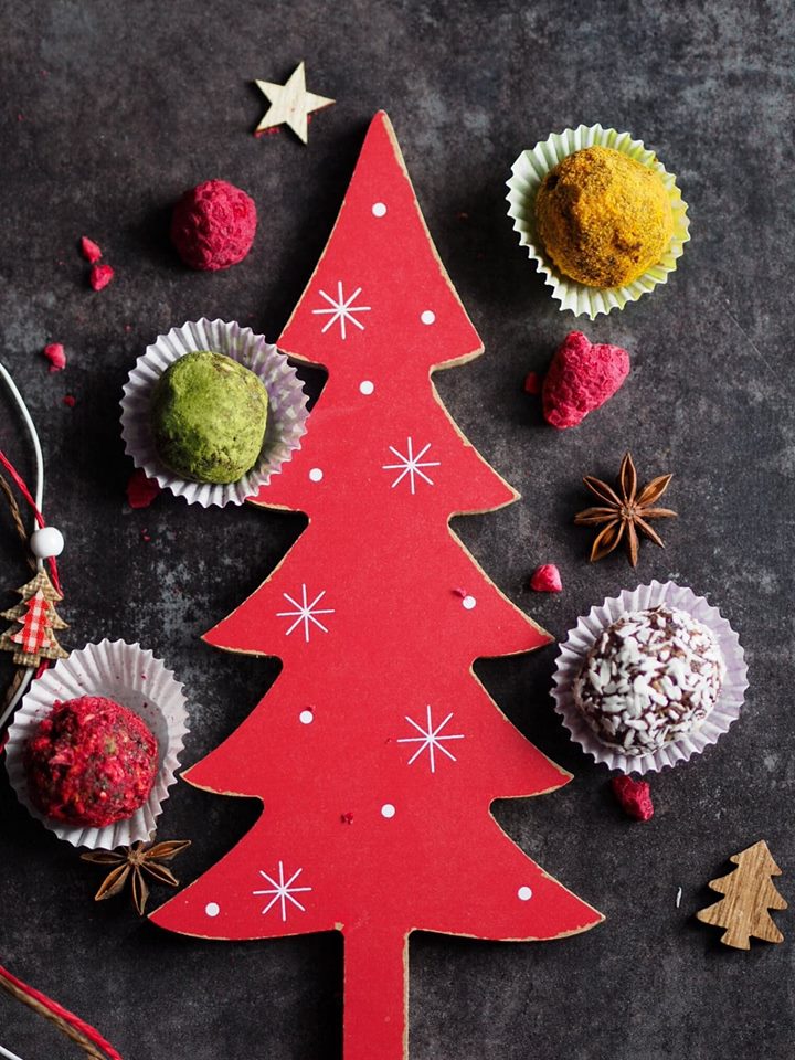 Święta tuż tuż, a więc nie może zabraknąć przepisu na zdrowe słodkości :-) Ta pyszna świąteczna inspiracja sprawdzi się zarówno jako przekąska, dekoracja stołu, a także jako… PREZENT! Każdego, kto ma ochotę podarować własnoręcznie wykonany prezent, zachęcamy do wykonania tych niezwykle prostych „trufli”. Po wykonaniu wystarczy umieścić każdą mini kuleczkę w papierowej mini papilotce, a następnie w ozdobnym świątecznym pudełeczku. 🙂