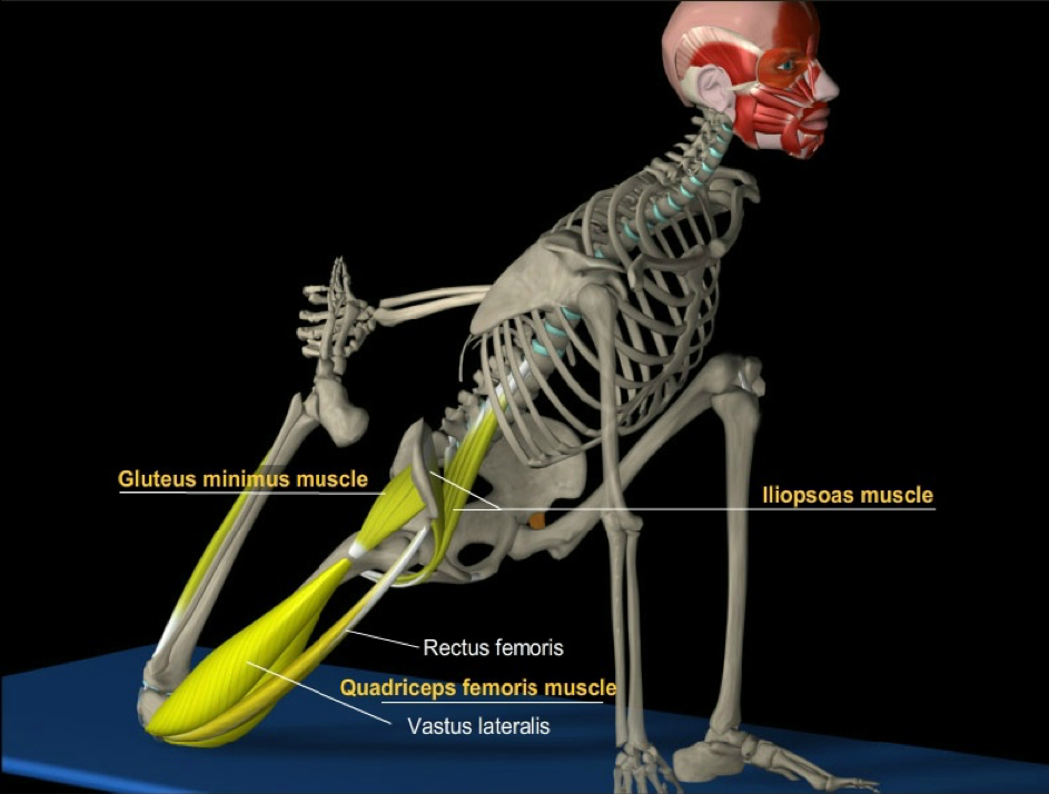 Kolejnym ważnym elementem jest rozciągnięcie mięśnia lędźwiowego. Przykład zaprezentowany poniżej prócz mięśnia lędźwiowego rozciąga również grupę mięśni przedniej części uda. Pamiętaj by miednicę wypchnąć do przodu, ćwiczenie wykonywać w zakresie bez bólowym z utrzymaniem pozycji przez 30 sekund.