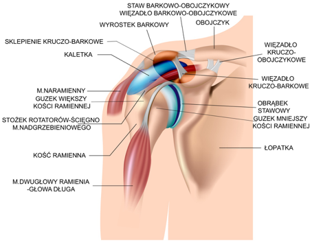Staw ramienny to struktura, którą charakteryzuje największa mobilność spośród wszystkich stawów ludzkiego ciała. Ruchomość tą zapewnia odpowiedni kształt powierzchni stawowych – głowa kości ramiennej posiadająca rozległą powierzchnię stawową, dopasowaną do płytkiej powierzchni stawowej łopatki oraz dostatecznie luźny aparat więzadłowo-torebkowy. Ruchomość w tym stawie uzyskiwana jest kosztem stabilizacji – ta zapewniana jest poprzez więzadła oraz mięśnie stożka rotatorów, czyli mięśnie nadgrzebieniowy, podgrzebieniowy, obły mniejszy i podłopatkowy. Dodatkowo stabilność stawu zwiększa obrąbek stawowy pogłębiający panewkę, ścięgno mięśnia głowy długiej ramienia oraz mięśnie podłużne, które poprawiają koaptację powierzchni stawowych stawu ramiennego [10].