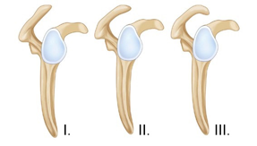 - Kształt wyrostka barkowego – I – prosty, II – zakrzywiony, III – haczykowaty. Osoby posiadające III typ wyrostka barkowego są najczęściej narażone na wystąpienie zespołu ciasnoty przestrzeni podbarkowej. Potwierdzają to badania Neera, potem Bigilianiego [1].